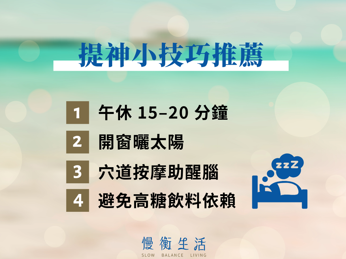 不論是一直都想睡,還是飯後總會撐不住,很多時候迫於工作、上課,沒辦法說睡就睡,只能想辦法讓自己清醒,直到一天的行程完全結束,除了喝咖啡、提神飲料,你還有更多無負擔的方法可以試試。