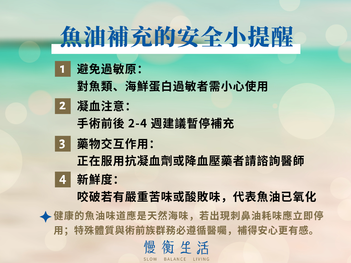 此外,對於胃部較敏感或有胃病的人來說,魚油成分直接在胃中釋放,也可能引發不適感。