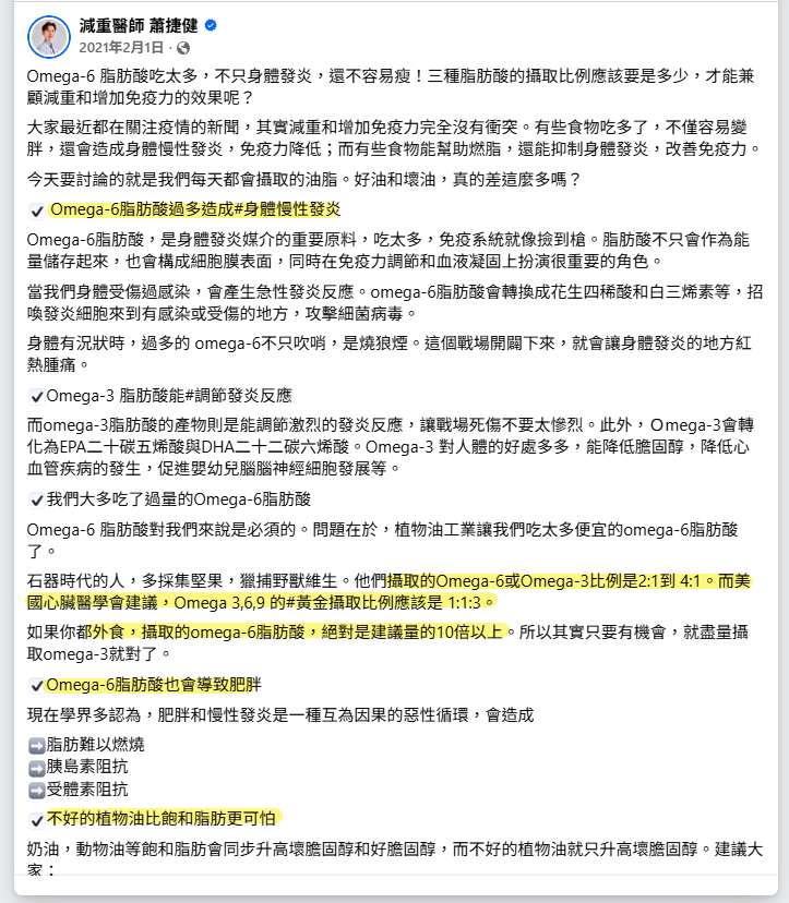 所以重點不在是否吃到魚油,而是日常飲食中是否能補足脂肪酸缺口。